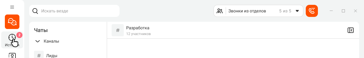 Чтобы быстро найти нужного клиента, коллегу или канал, воспользуйтесь единым окном поиска. Прямо из окна поиска можно написать или позвонить контакту.