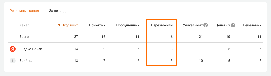 5. Отслеживайте, по скольким пропущенным звонкам перезвонили