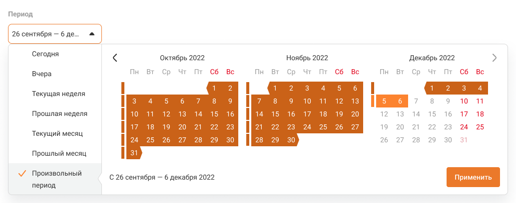 6. Соберите отчет за любой интересующий вас период в пределах года