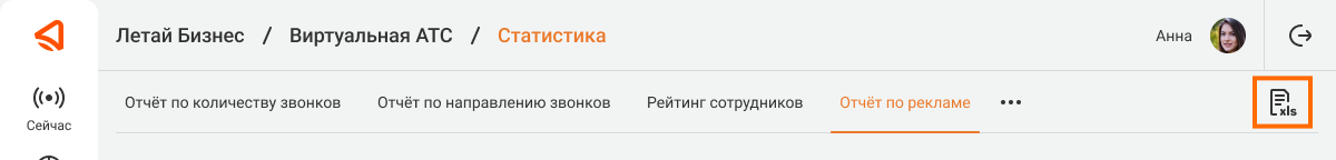 Вы можете экспортировать отчет по каждой рекламной кампании в формате xlsx. Экспорт в xlsx позволит провести более глубокий сравнительный анализ данных, используя собственные инструменты для аналитики. Комбинируйте отчет по рекламе с другими данными. Например, добавив столбец с расходами на рекламу, вы можете посчитать стоимость уникального звонка на рекламный номер. Чтобы скачать отчет в формате xlsx, кликните на иконку с подписью xls в правом верхнем углу экрана.
