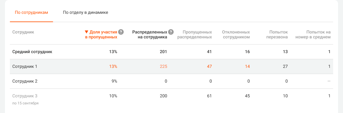 - разбираться, почему звонки в отдел остались без ответа и кто из сотрудников чаще их пропускает.
